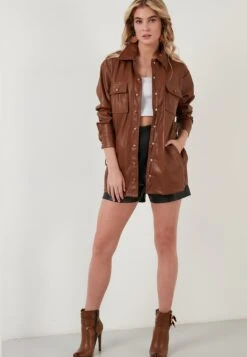 Stijlvolle LELA Imitatieleren Jas – Nu in Camel! Perfecte Pasvorm, Uitstekende Prijs!