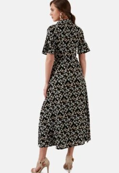 LELA Floral V Neck Ruffle Detail Mini- Jurk – Baby Blue