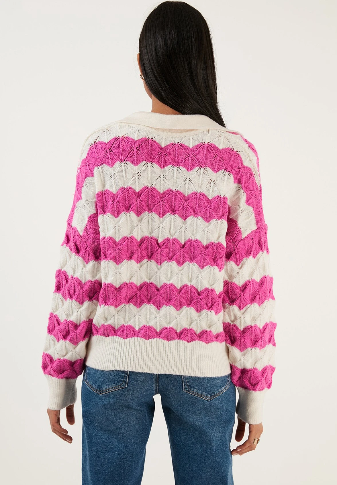 LELA Poloshirt – Ecru/Fuchsia