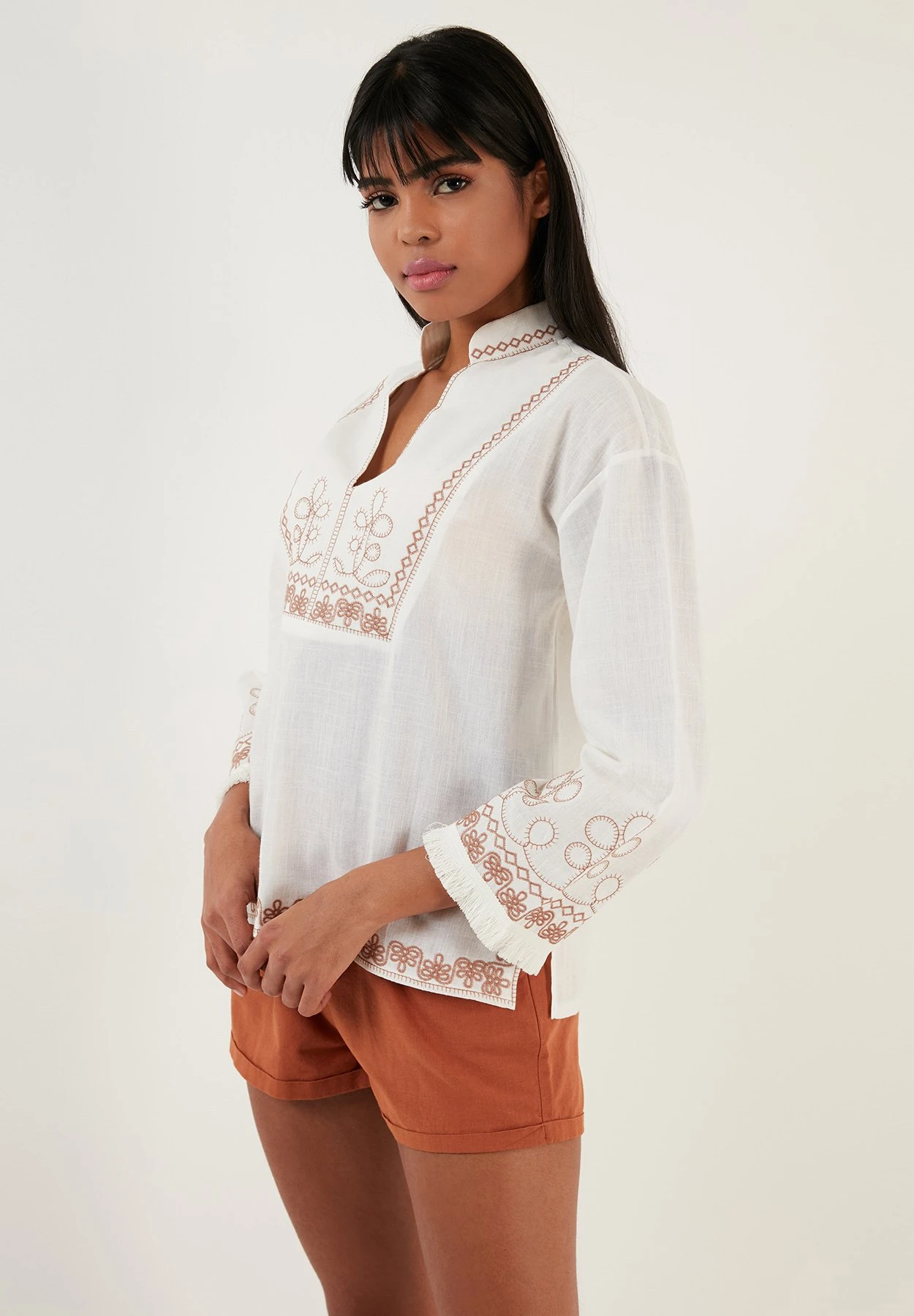 LELA Regular Fit – Blouse – Ecru Camel