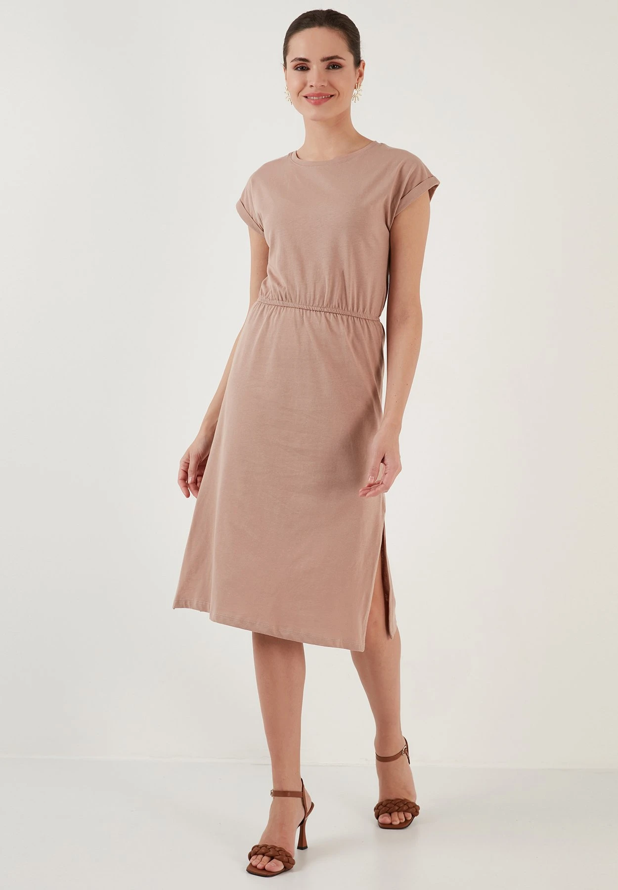 LELA Short Sleeve Midi – Jurk – Biscuit