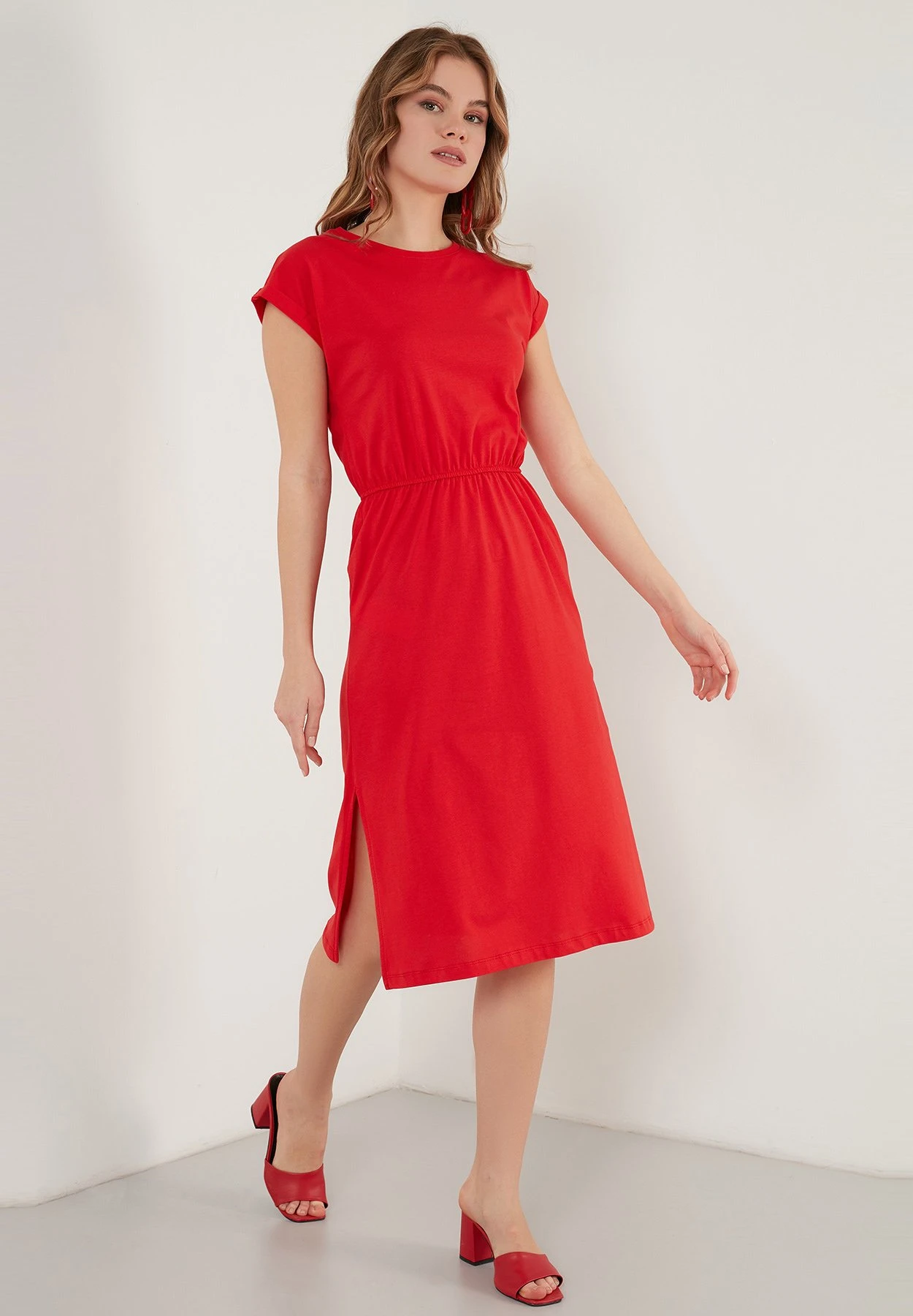 LELA Short Sleeve Midi – Jurk – Red